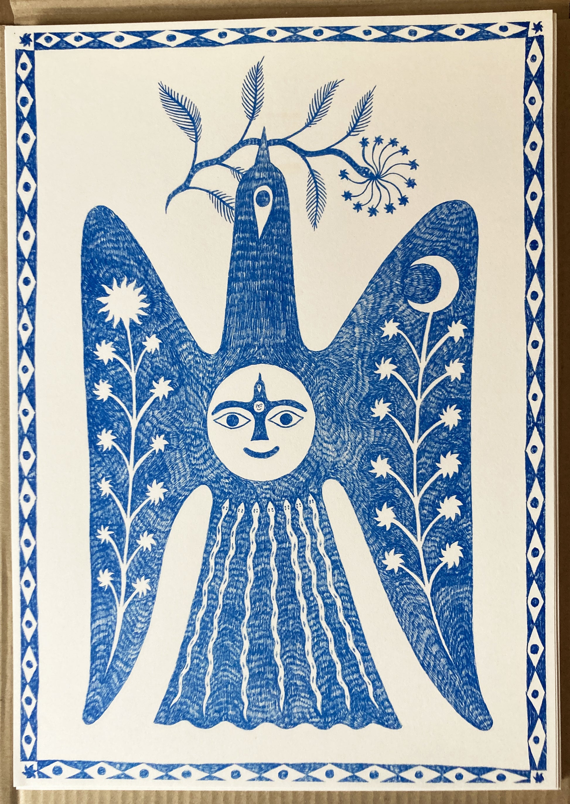 Affiche Oiseau format A3 en impression risographique bleu 150g