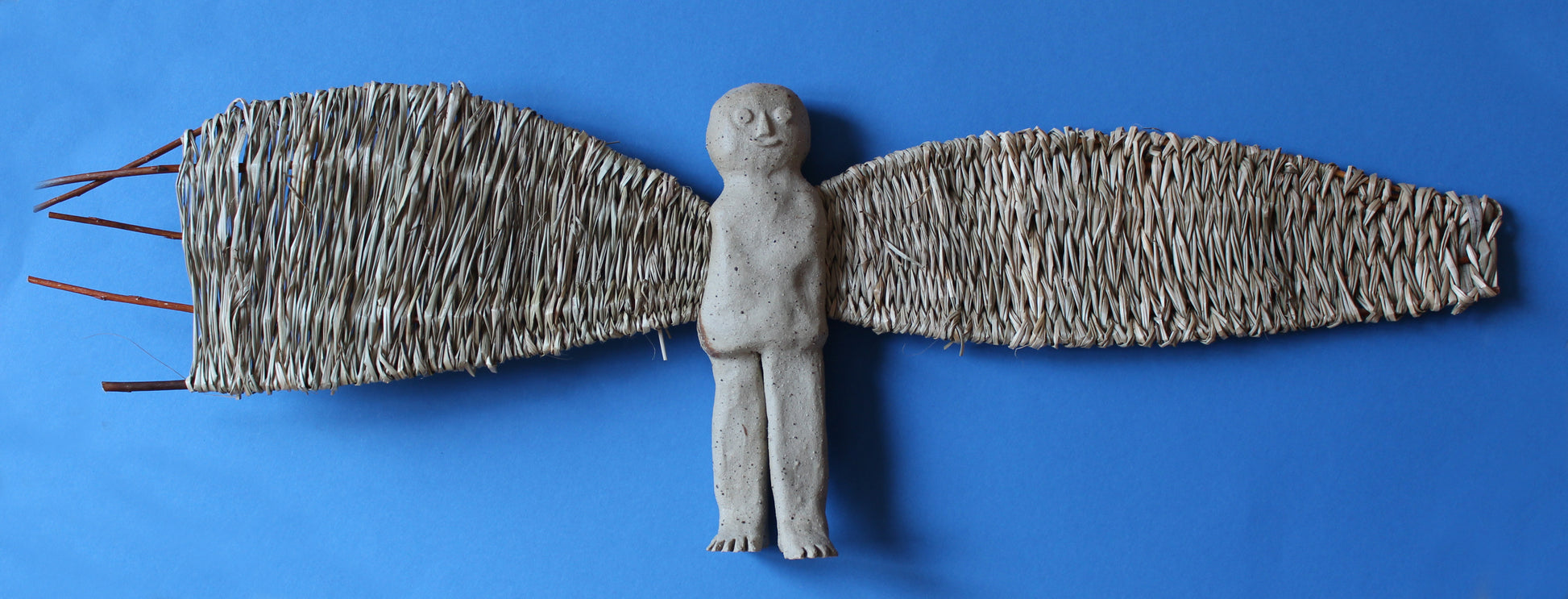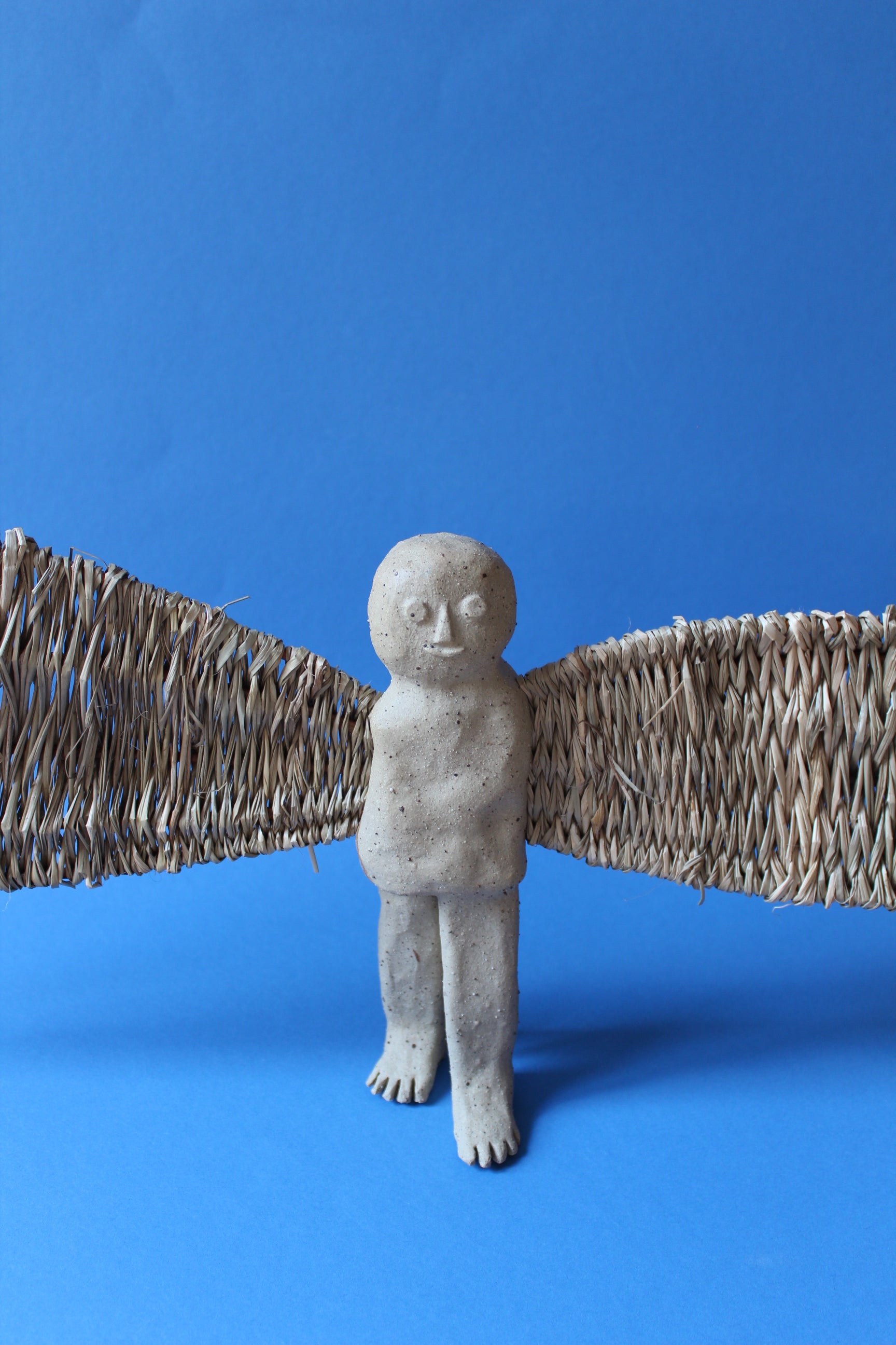 Sculpture d'un ange en grès et vannerie