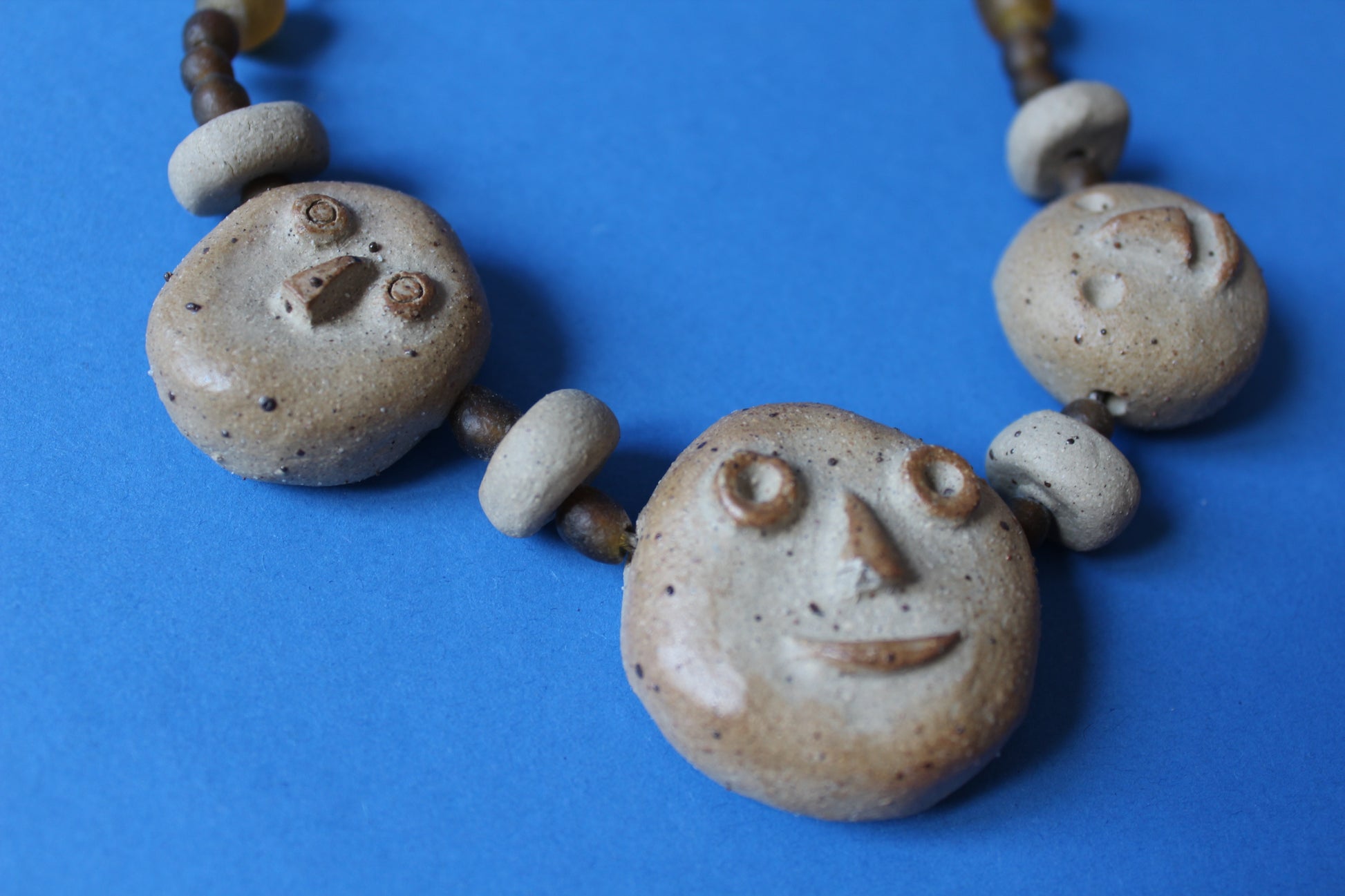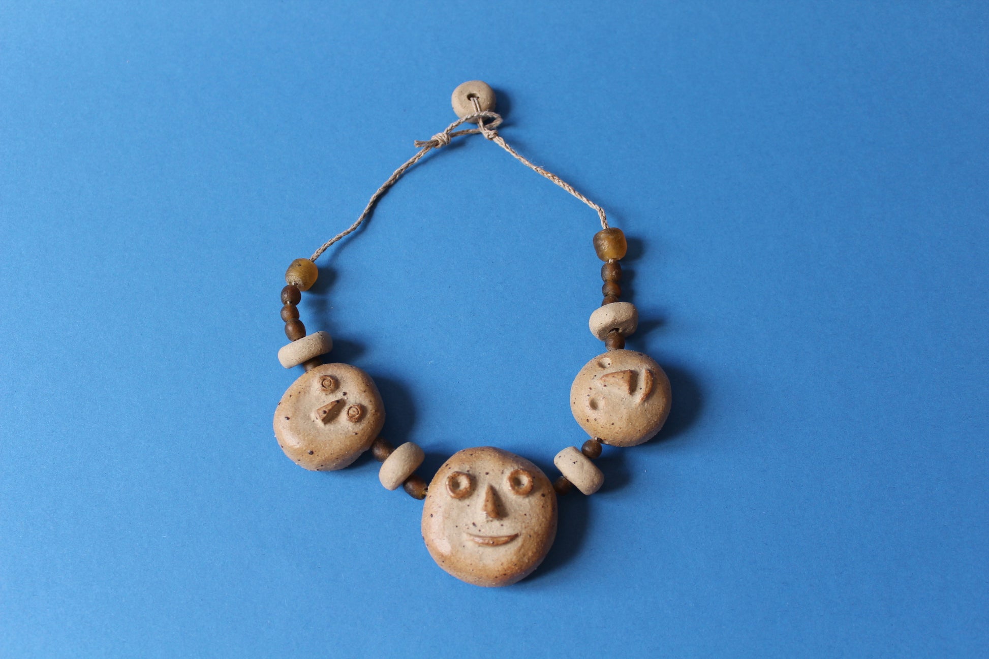 Collier de perle de grès et perles en verre recyclé sur ficelle de chanvre tressée