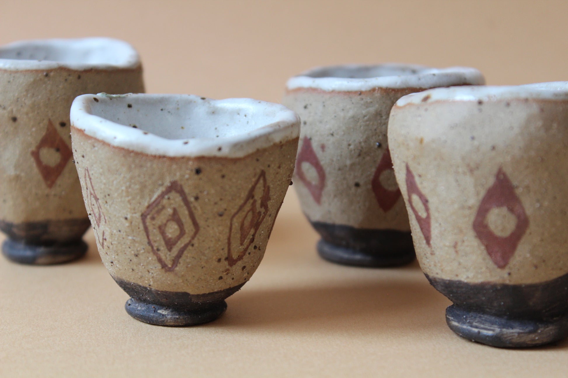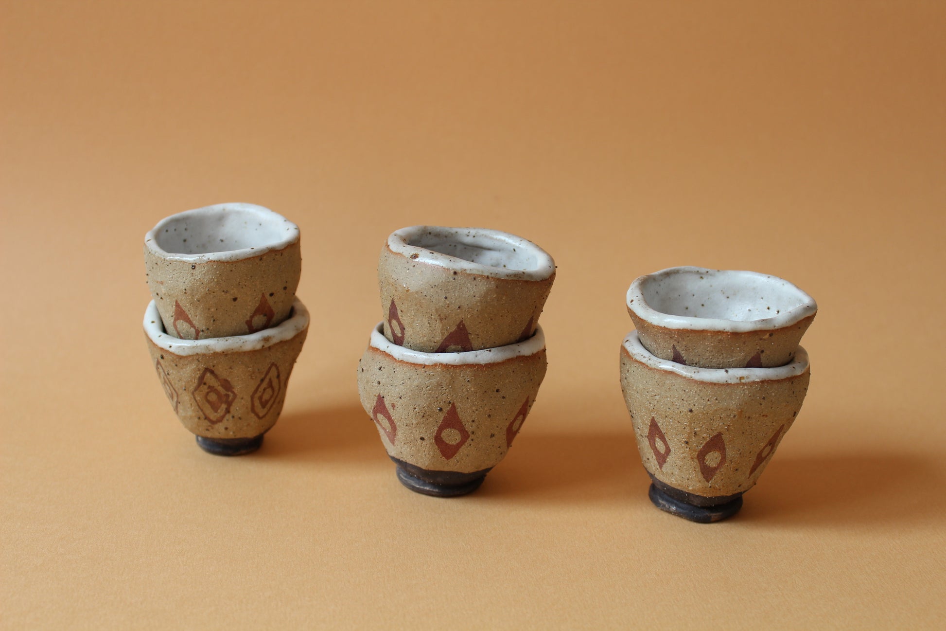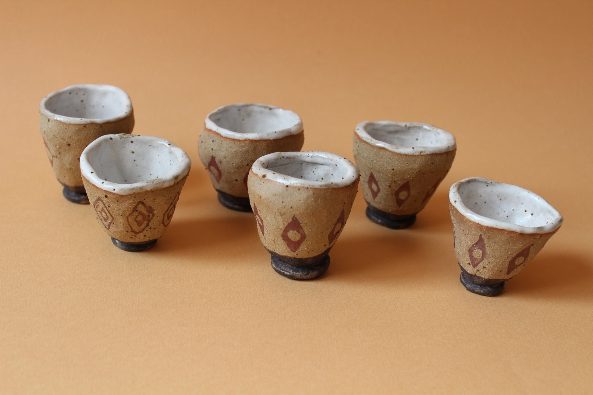 Lot de 6 tasses à expresso en grès, émaillé à l'interieur
